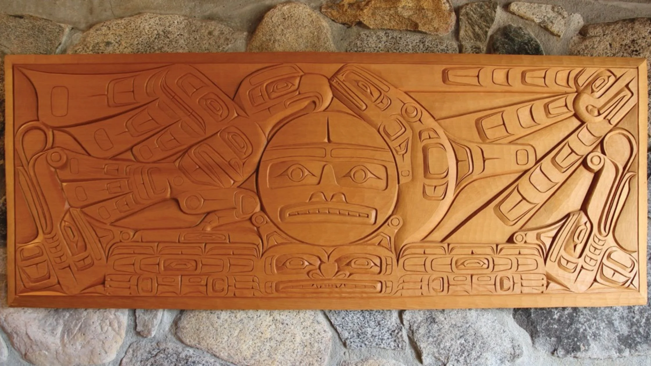 “Yellow Cedar carving (58” × 23”) created by renowned Kwakiutl artist Stanley Hunt. Valued at $13,000.